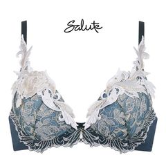 カップ上辺には、高密度な刺繍をほどこしたゴージャスなアップリケ。谷間で揺らめくパールチャームの艶めき。パールビーズやスワロフスキー・クリスタルが上品に煌めく、40周年限定コレクション。