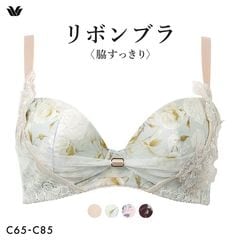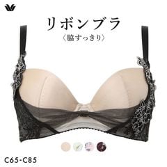 気になる脇肉をしっかり収めて、デコルテをふっくらキープする【リボンブラ 脇すっきり】。安定感のある着け心地で、バストトップ位置を高くし、脇すっきり着やせシルエットへ導きます。