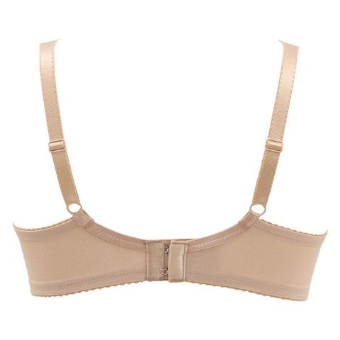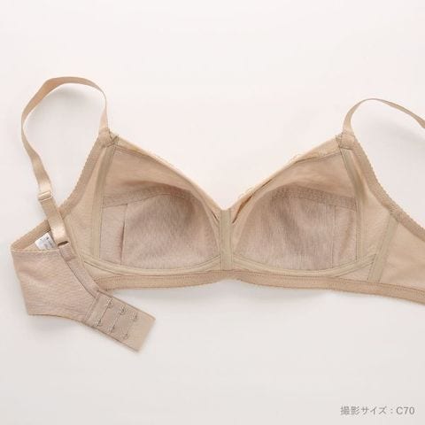 アンダー部分は、フルストレッチ構造でラクなつけごこち。しめつけ感が少なくラクな着用感です。カップ肌側・バックは綿混素材を使用し、やさしい肌ざわり。