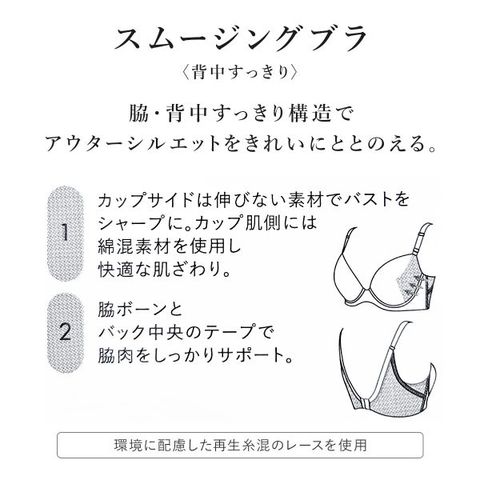 脇・背中すっきり構造でアウターシルエットをきれいにととのえる【スムージングブラ】です。
