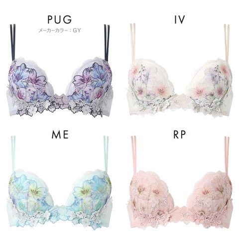 | 仕 様 | ・ホックの数:2段2列 ・3/4カップ ・パッド取り外し:可能 ・肩紐取外し:不可 ・ワイヤー入り ・サイドボーン:あり ※サイズによって生産のないカラーもございます。 ※サイズによっては柄やアップリケの位置、デザインが異なる場合があります。 |
