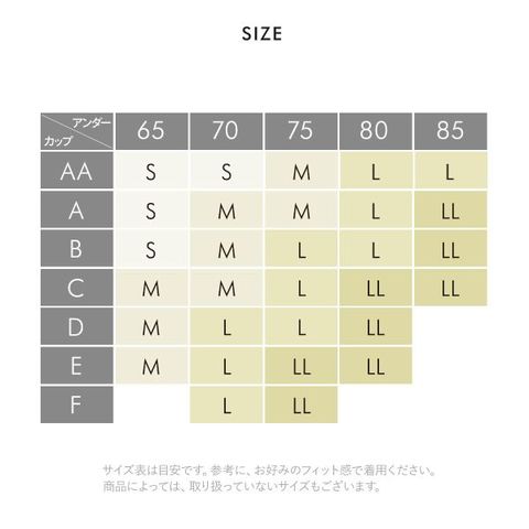 | 仕 様 | ・ホック:2段3列 ・ピーナッツ型パッド取外し:可 ・肩紐取り外し:不可 ・ノンワイヤー ・サイドボーン:なし |