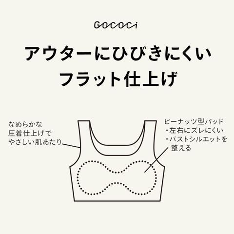 左右のパッドをひとつなぎにした「ピーナッツパッド」を使用することで、バストトップの間隔が離れず、位置が安定し脇もすっきり。立体感と厚みを持たせた成形パッドなので上向きでトップ位置の高い、立体的なバストシルエットをメイクします。