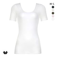 吸汗性・通気性があり、シーズンを通して快適に着用できます。ネック・アームホールは細く繊細なサテンパイピング仕上げで上品な印象です。