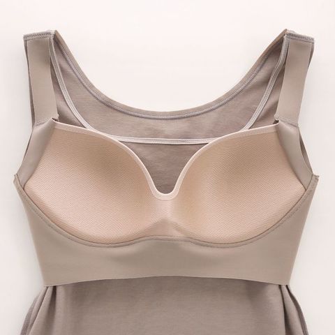 立体感がある左右一体型成型カップでバストになじみやすく、肩まで続くリフティングシートでギュッと引き上げ、動いてもフィット感をキープ。ブラのようなバストの立体感をメイクします。