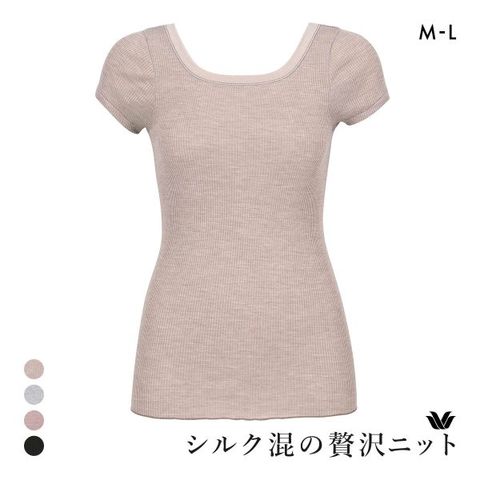 【送料無料】 ワコール シルク混 2分袖 トップス インナー 半袖 Uネック ML Wacoal
