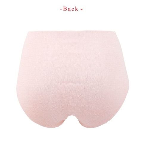 紙素材(パルプ40%)と不織布を使用した1回着用の使いきりタイプ。横方向に伸びのよい素材でやさしくフィットし、M-LLまでワンサイズで対応します。テープ類を使用していないので、圧迫感を軽減しラクな着用感です。