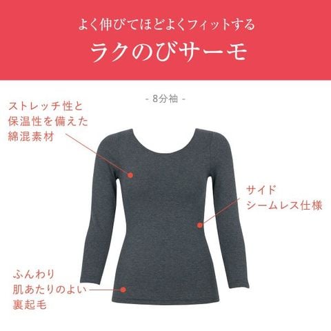よく伸びてほどよくフィットする裏起毛あったかインナー【ラクのびサーモ】8分袖インナーです。