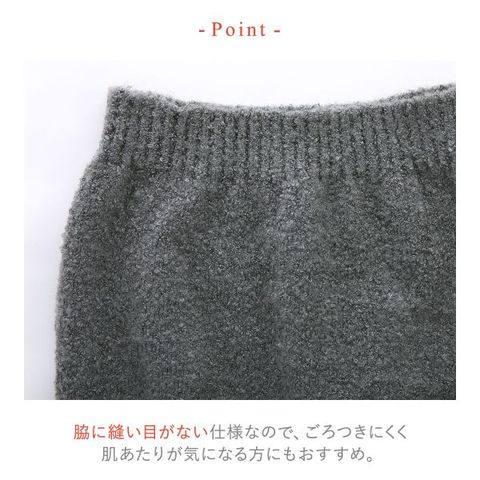 マシュマロ糸を使いふんわり厚手に編み上げたあったか腹巻。脇に縫い目がない仕様なので、ごろつきにくく肌あたりが気になる方にもおすすめ。