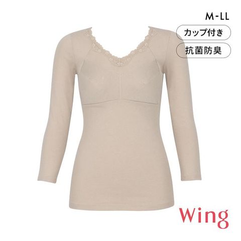 ワコール ウイング 綿の贅沢オーガニック カップ付き長袖インナー 8分袖 吸湿発熱 肌側綿100% Wacoal Wing 大きいサイズ