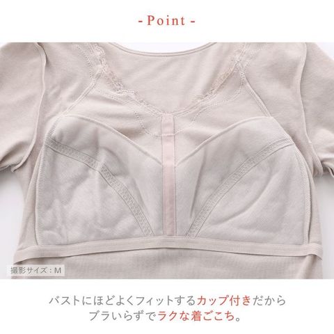 やわらかく、やさしい肌ざわり。あたたかなオーガニックコットン混のインナー【綿の贅沢 オーガニック】カップ付き8分袖インナーです。