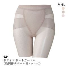 ワコール人間科学研究開発センターが設計した独自ラインが股関節まわりをやさしく支えて安定感をプラス。ラインにあて布をつけることで生地のパワー差を生み出し、脚の動きをスムーズにサポートする【ボディサポートガードル<股関節サポート(綿メッシュ)>】