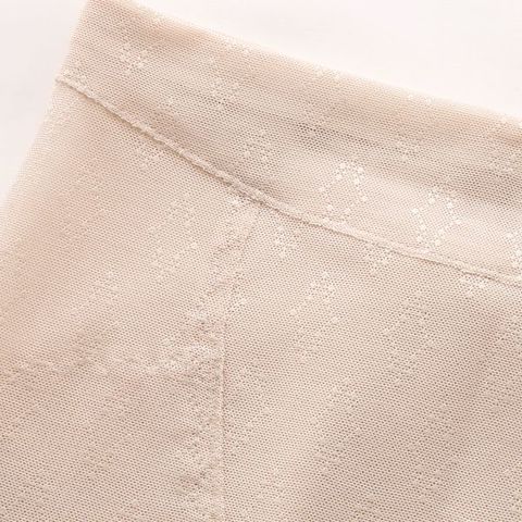 お腹まわりはフロントのあて布でほどよくサポートし、すっきりとしたシルエットへ。ウエスト部分は折り返し仕様で段差を軽減し、くい込みにくい快適設計です。