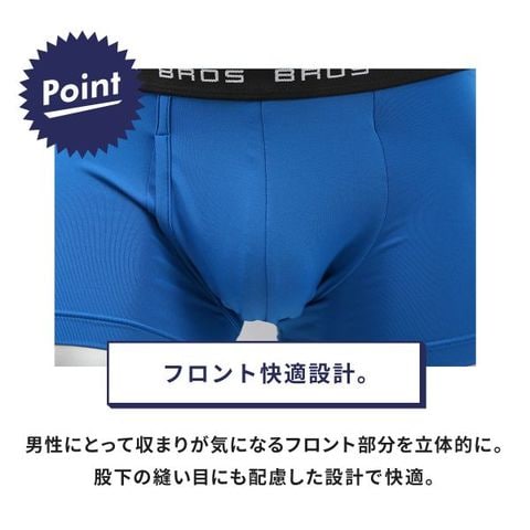 立体フロントで快適キープ!【BROS by WACOAL MEN】の定番、トレンドカラーを意識した使いやすい無地のベーシックなボクサーパンツです。