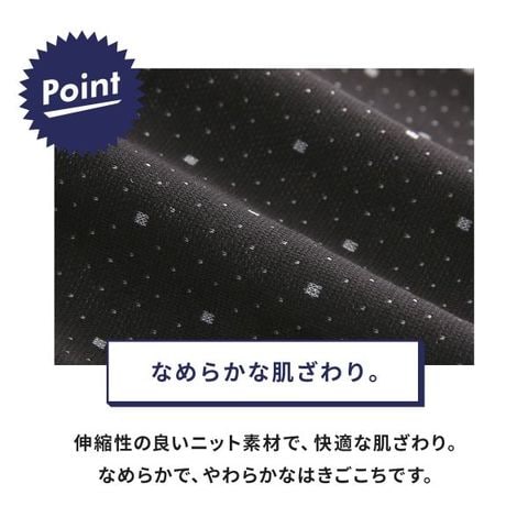 伸縮性の良いニット素材で、快適な肌ざわり。なめらかで、やわらかなはきごこちです。フロントはボタンつきの前開きタイプです。