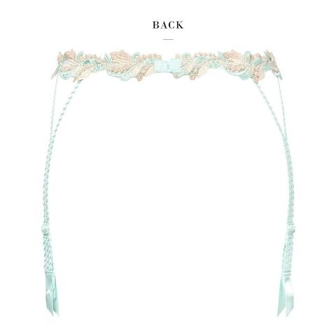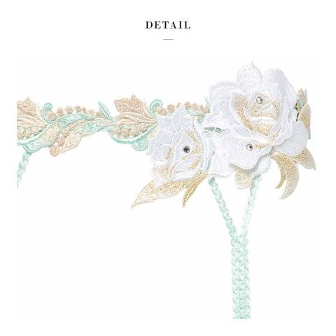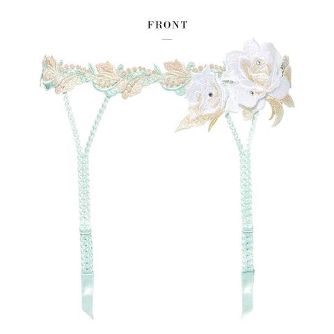 長く美しい髪の毛をモチーフにデザインしたガーターベルト。ウエストにレースをぐるりと一周飾り、バラの花をイメージしたアップリケをあしらったプレシャスなデザインです。