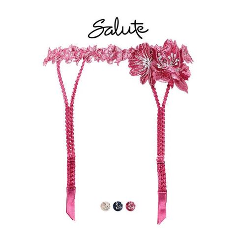 モダンな色彩に優雅なレースが際立つガーターベルト。肌にまとうとレースが引き立ち独創的な美しさを演出します。華奢なベルトに飾られた存在感のあるアップリケは芍薬の花をイメージしました。花びらの上で輝く繊細なクリスタルと、ウエストまわりにきらめきを与えるラメ糸がゴージャス。