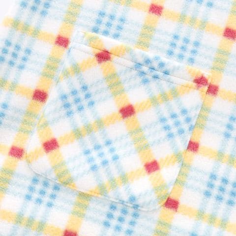 ぬくもりのある、かわいい色合いのチェック柄テキスタイル。ポケットから顔をのぞかせている黒猫ちゃんのアップリケがデザインポイントです♪