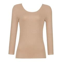 綿100%素材で、やさしい風合い。肌側はふんわり起毛加工で心地よく、しっかり暖かい、保温性の高いインナーです。