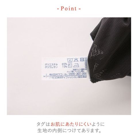 またカップ部分をのぞく裏打ちにはパワーネットのメッシュ素材、背中部分の裏打ちに接触冷感性のある素材を使用し、汗をかきやすい背中もひんやり涼しく。
