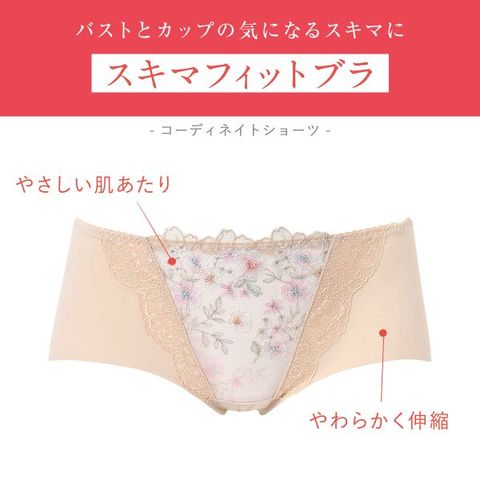 もちっ、ふわっ。バストとカップのすきまを埋めてボリュームメイク。【スキマフィットブラ】コーディネイトショーツです。