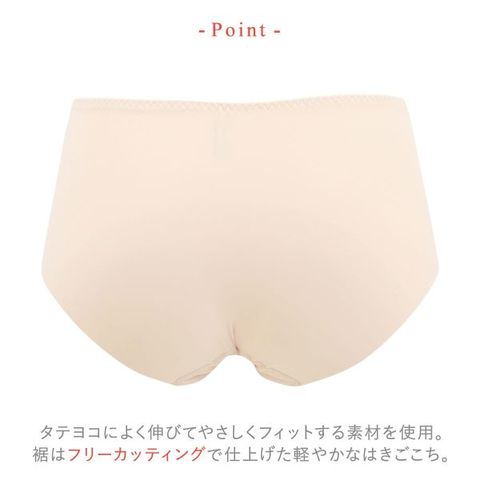 | 仕 様 | ・伸縮性:バックは縦横にあり ・透感:なし ・はき込み丈:あさめ ・クロッチ:付き |