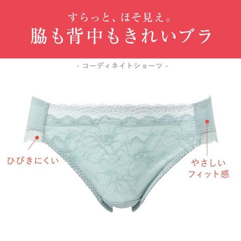 脇から背中の段差をおさえて、すっきりきれいなシルエットに【脇も背中もきれいブラ】コーディネイトショーツです。
