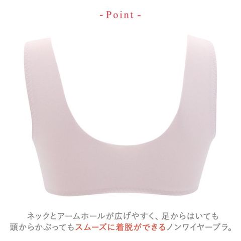 ネックとアームホールが広げやすく、足からはいても頭からかぶってもスムーズに着脱ができるノンワイヤーブラ。