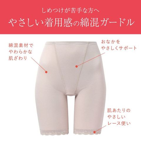しめつけが苦手な方にもおすすめ♪やさしい着用感の綿混ロング丈ガードルです。