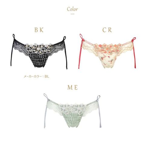 華やかなデザインのTバックショーツ。両サイドにあしらったリボンが、ほんのり甘いアクセント。アウターにひびきにくく、おしゃれを楽しみたい日にもおすすめです。