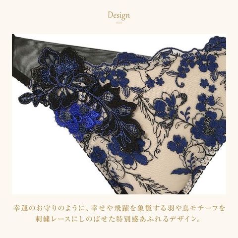 幸運のお守りのように、幸せや飛躍を象徴する羽や鳥モチーフを、刺繍レースにしのばせた特別感あふれるデザインです。