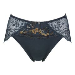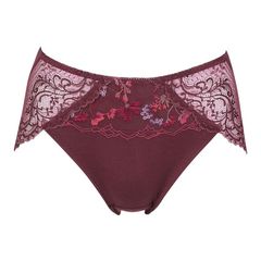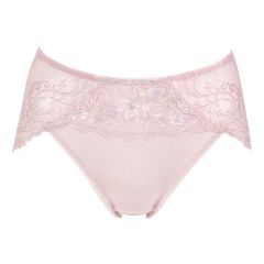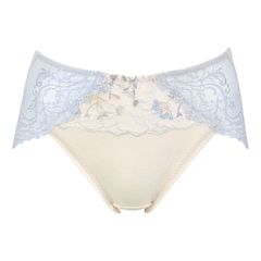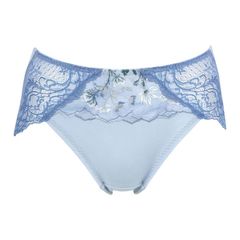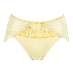 脚がすらりと長くみえる、脚さばきのよいハイレッグタイプ。フロントの小花柄刺繍レースと繊細なラッセルレースが華やかなデザイン。