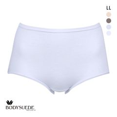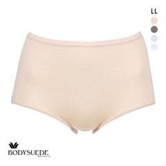 ふかめのはきこみ丈で、おなかとヒップをすっぽり包みこんでフィット。ボディスエードの綿混ノーマルショーツです。