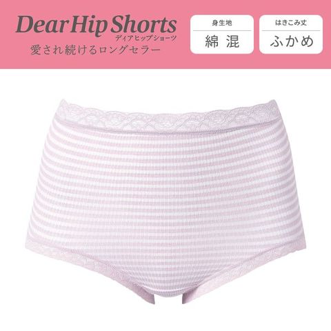 愛され続けるロングセラー★Dear Hip Shorts(ディアヒップショーツ)。身生地は吸汗速乾性がよい軽やかな針抜きボーダー素材でさらっと快適です。