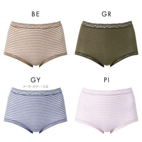 ウエスト、裾周りにはストレッチレースをあしらい、くい込みにくくショーツラインがひびきにくい仕様になっています。ポップなボーダー柄とカジュアルなカラーリングが気分を明るくするキュートなデザイン。デイリー使いにオススメです。