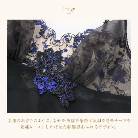 幸運のお守りのように、幸せや飛躍を象徴する羽や鳥モチーフを、刺繍レースにしのばせた特別感あふれるデザインです。