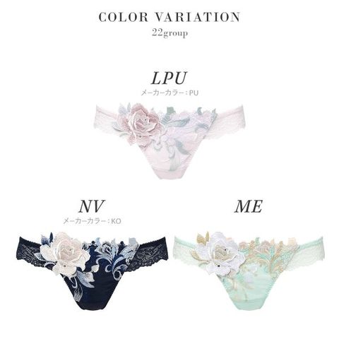 フロントは裏打ち付きで透けにくく、やさしい肌あたり。バックにもリュクスなアップリケがあしらわれた、セクシーで華やかなデザインです。