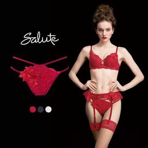 バックにもアップリケをあしらい、後ろ姿も華やかな仕上がりに。フロントは裏打ちつきで透けにくく、優しい肌あたりです。
