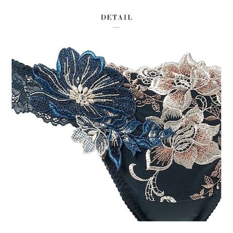 はっきりとした輪郭で表現された花々と、芍薬の花をイメージしたアップリケがゴージャス。ドラマティックなカラーリングが魅力を際立たせます。花びらの上で輝く繊細なクリスタルと、フロントにきらめきを与えるラメ糸が豪華さを演出。バックにほどこされたクロスデザインがセクシーさを引き立たせるアクセントに。
