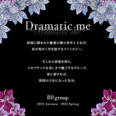 砂漠に囲まれた魅惑の都の青年と王女が、星が煌めく空を旅するファンタジー。そこから着想を得た、エキゾチックな美しさで魅了する80グループ。身に着ければ、異国の王女になった気分。