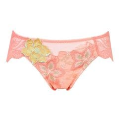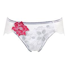 フロントは裏打ち付きで透けにくく、やさしい肌あたり。バックにはハートをイメージした花びらのアップリケをあしらった、セクシーで可憐なバックデザインです。