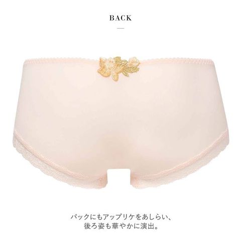 裾は優しい肌あたりでくいこみにくく、ショーツのラインがひびきにくいストレッチレース仕様。フロントは裏打ちつきで透けにくく、優しい肌あたりです。