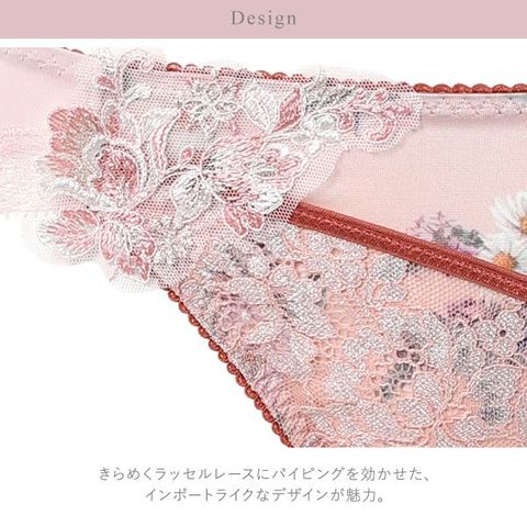 気分が華やぐ美しい花柄と、洗練されたシンプルな無地からお選びいただけます。きらめくラッセルレースにパイピングを効かせた、インポートライクなデザインが魅力。シアーな薔薇のアップリケが美しく上品なアクセントに。コーディネート着用すると、さらにラグジュアリーで洗練された雰囲気を楽しめます。