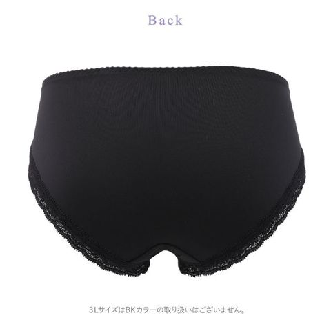 裾周りはくいこみにくく、アウターにもひびきにくいストレッチレース仕上げ。フロントは裏打ちつきで透けにくくセクシーになりすぎません。