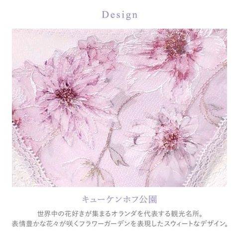 デザインテーマは、「キューケンホフ公園」。オランダを代表する観光名所「キューケンホフ公園」は、世界中の花好きが集まるスポット。表情豊かな花々が咲くフラワーガーデンを表現した、スウィートな気分に浸れるデザインに仕上げています。