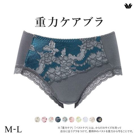 つけるだけで、重力によるバストの皮膚伸びを抑え、気軽にバストケアができる【重力に負けないバストケアブラ】ノンワイヤータイプのコーディネートショーツです。