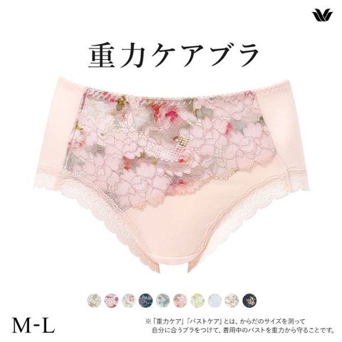 つけるだけで、重力によるバストの皮膚伸びを抑え、気軽にバストケアができる【重力に負けないバストケアブラ】ノンワイヤータイプのコーディネートショーツです。