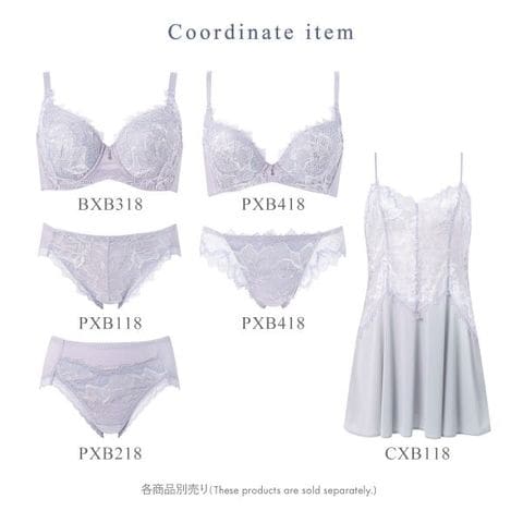 デザインテーマは、「Luminous feather(ルミナス フェザー)」。羽のような繊細さがありながら、重厚感のある浮き糸でしっかりと柄を表現した、コントラストが美しい落下版ラッセルレースを使用。ハグされているかのように、サイドにもレースを重ね、大胆なスカラップのカラーアクセントで躍動感のあるデザインに。レースの陰影はラグジュアリーなムードを演出し、洗練されたオトナの女性にマッチします。