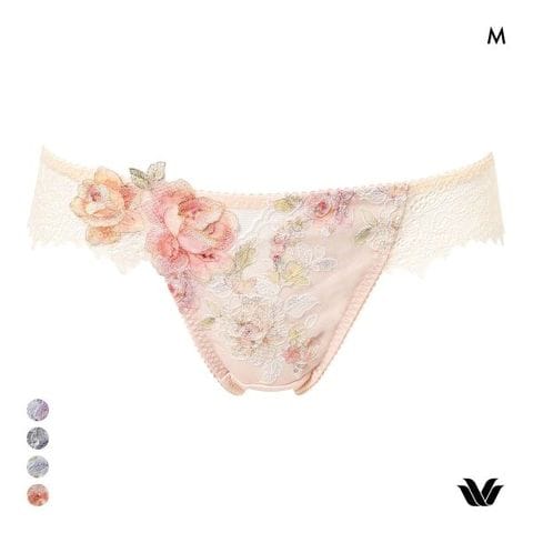 フロントのレースには繊細に輝くラメ糸を散りばめ、華やかなアップリケをワンポイントにあしらった優雅で贅沢なショーツ。色とりどりに咲き誇るお花のモチーフが、美しくロマンティック。透け感のある上品なアップリケを添えることで、高貴でエレガントな雰囲気に仕上げました。バックは総レースで可憐さと甘さをプラス。ブラジャーとのペアコーディネイトでより華やかさが引き立つ一枚です。