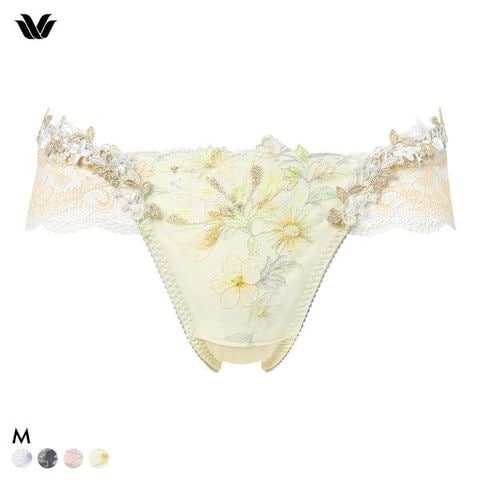 繊細に輝くラメ糸をフロントのレースに散りばめた、軽やかで春らしいTバックショーツ。サイドのループにはケミカルレースを豪華にあしらい、華やかに。バックは総レース仕様で可憐さと甘さをプラスし、ロマンティックなデザイン。ブラジャーとのペアコーディネイトで華やかさがより引き立つ一枚です。
